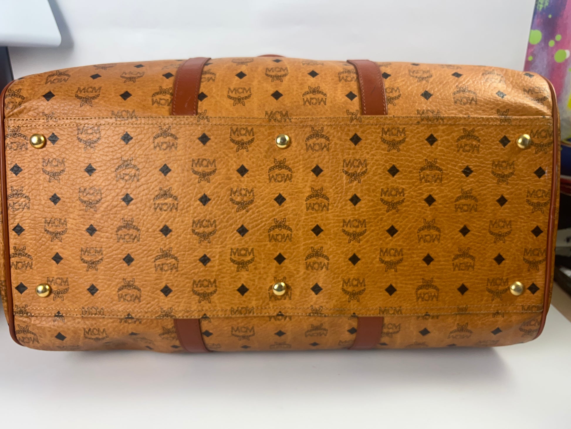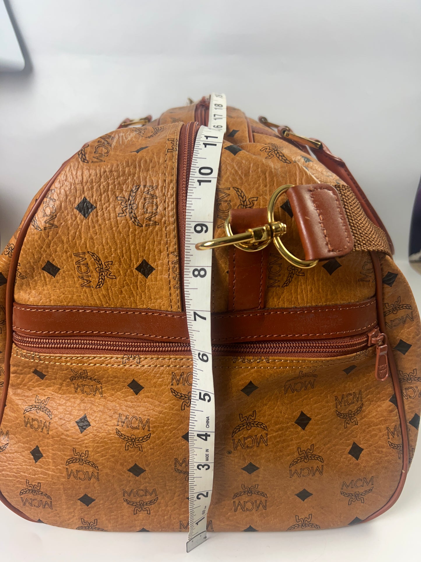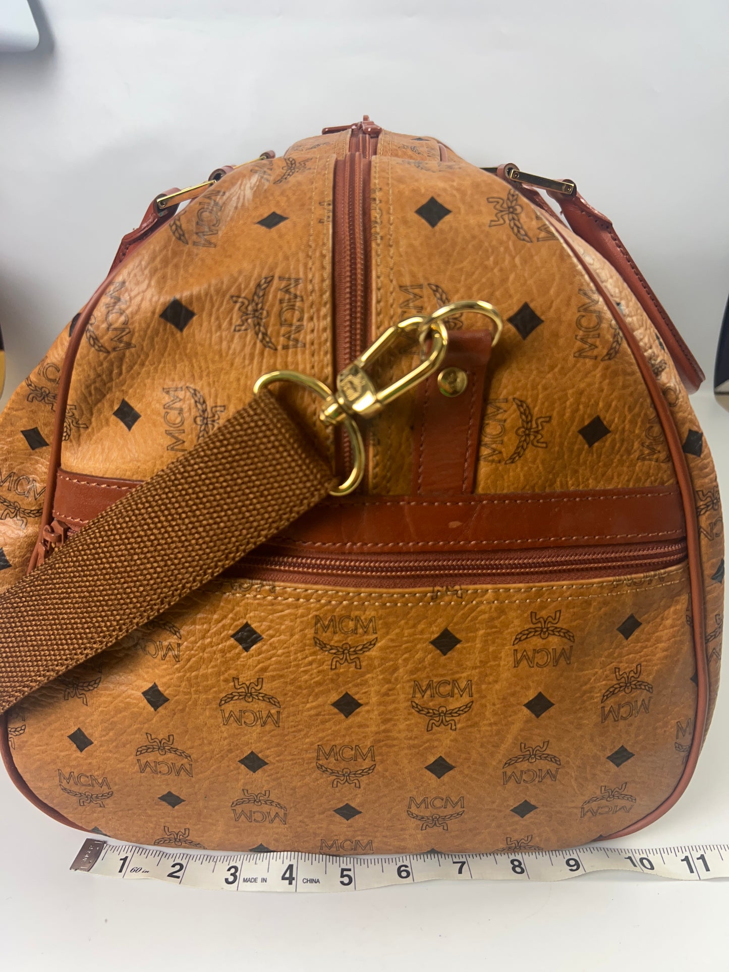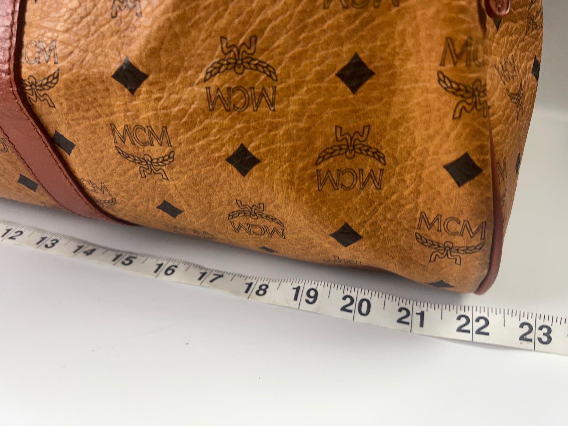 MCM Boston/Duffel Handbag Cognac Visetos w/Strap 22x11x10