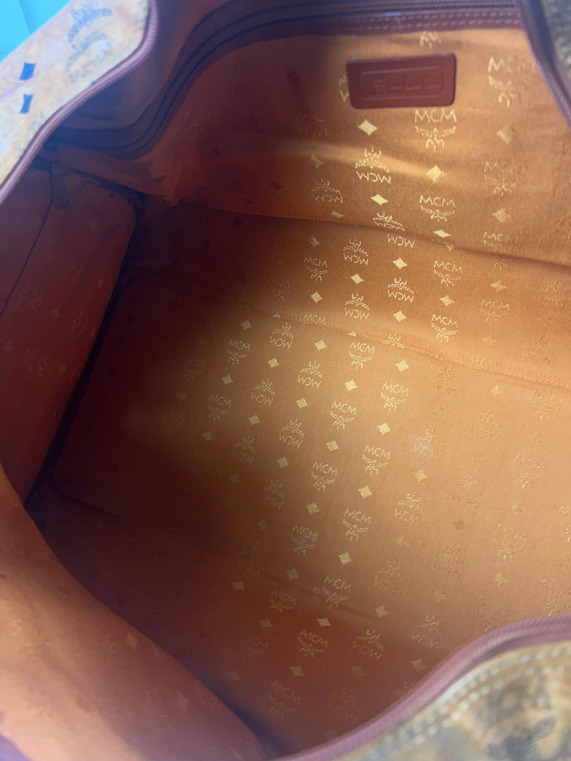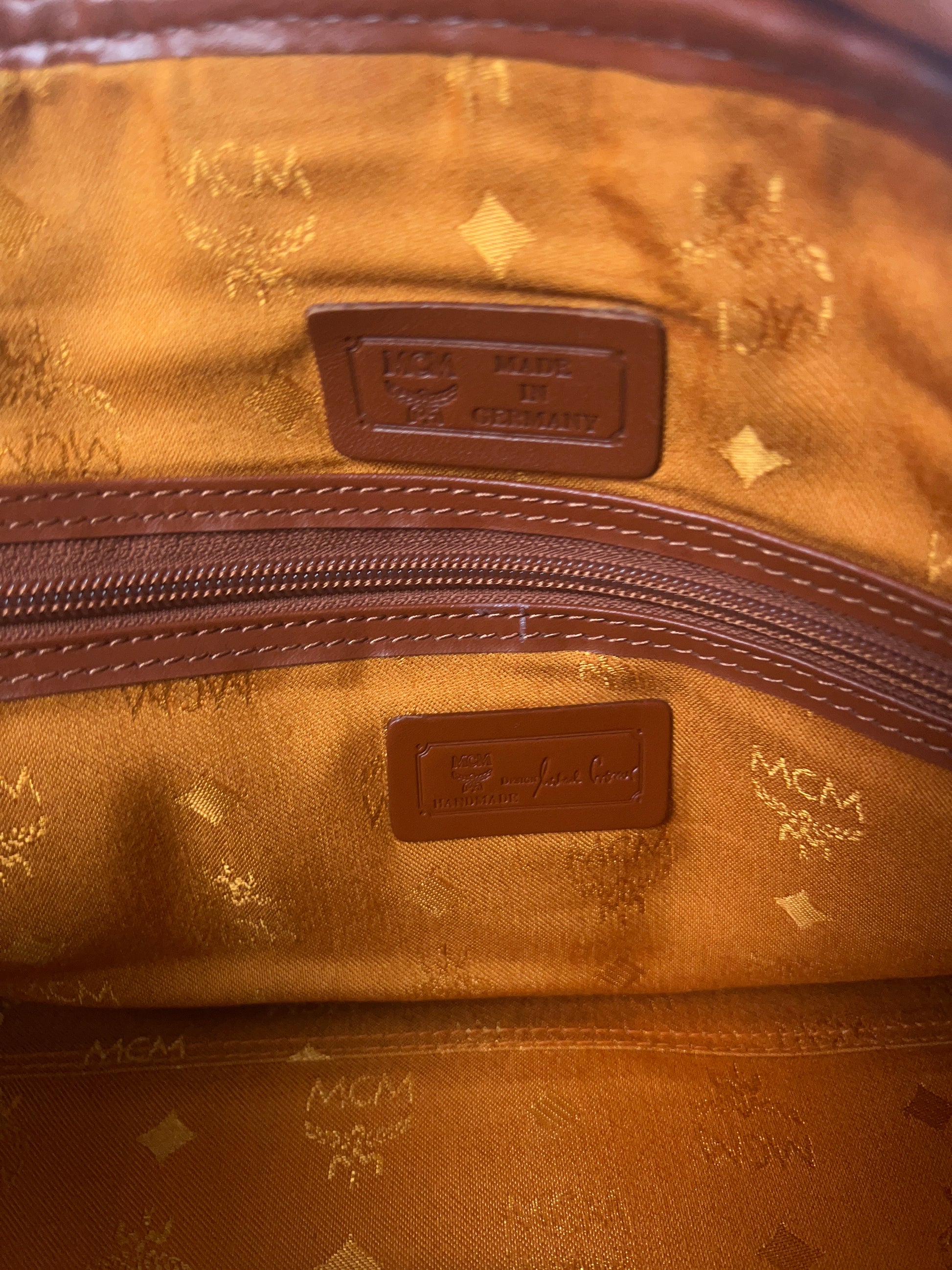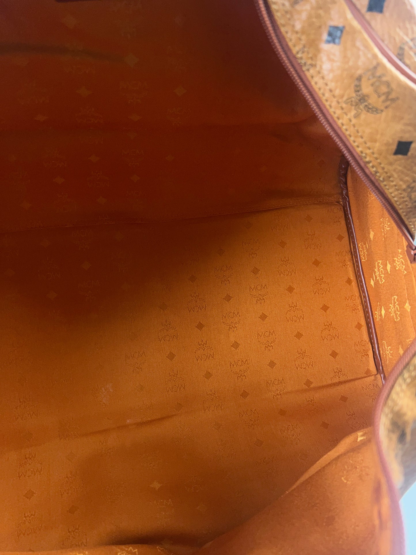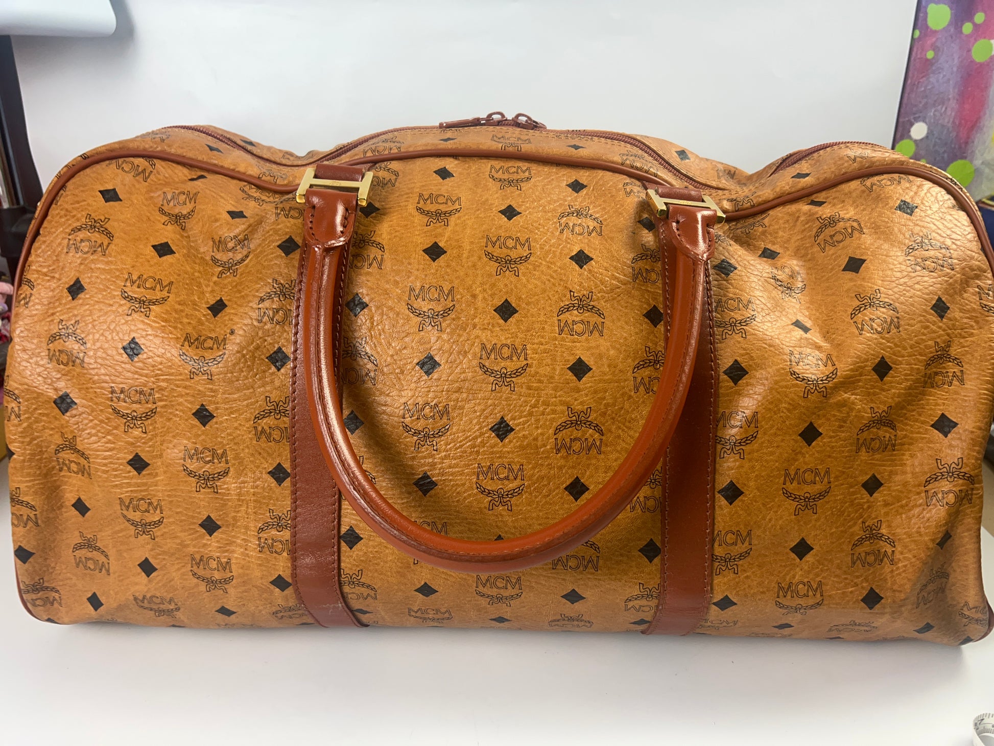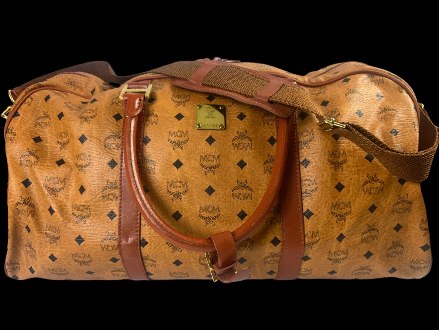 MCM Boston/Duffel Handbag Cognac Visetos w/Strap 22x11x10