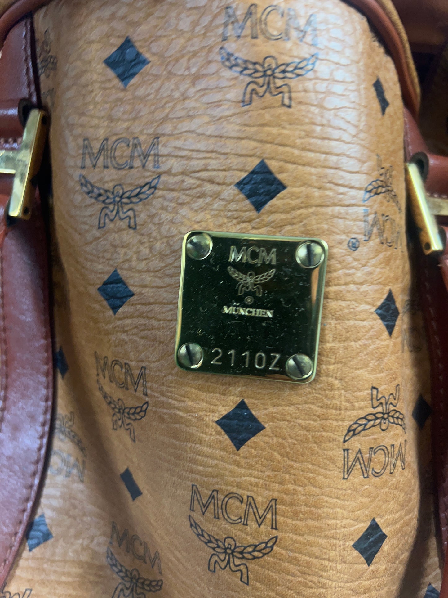 Stay stylishly organized on-the-go with the MCM Boston/Duffle Handbag. Crafted in luxurious cognac Visetos, this spacious 22x11x10 bag features a signature logo print and multiple pockets for all your essentials. Perfect for the fashion-forward traveler!