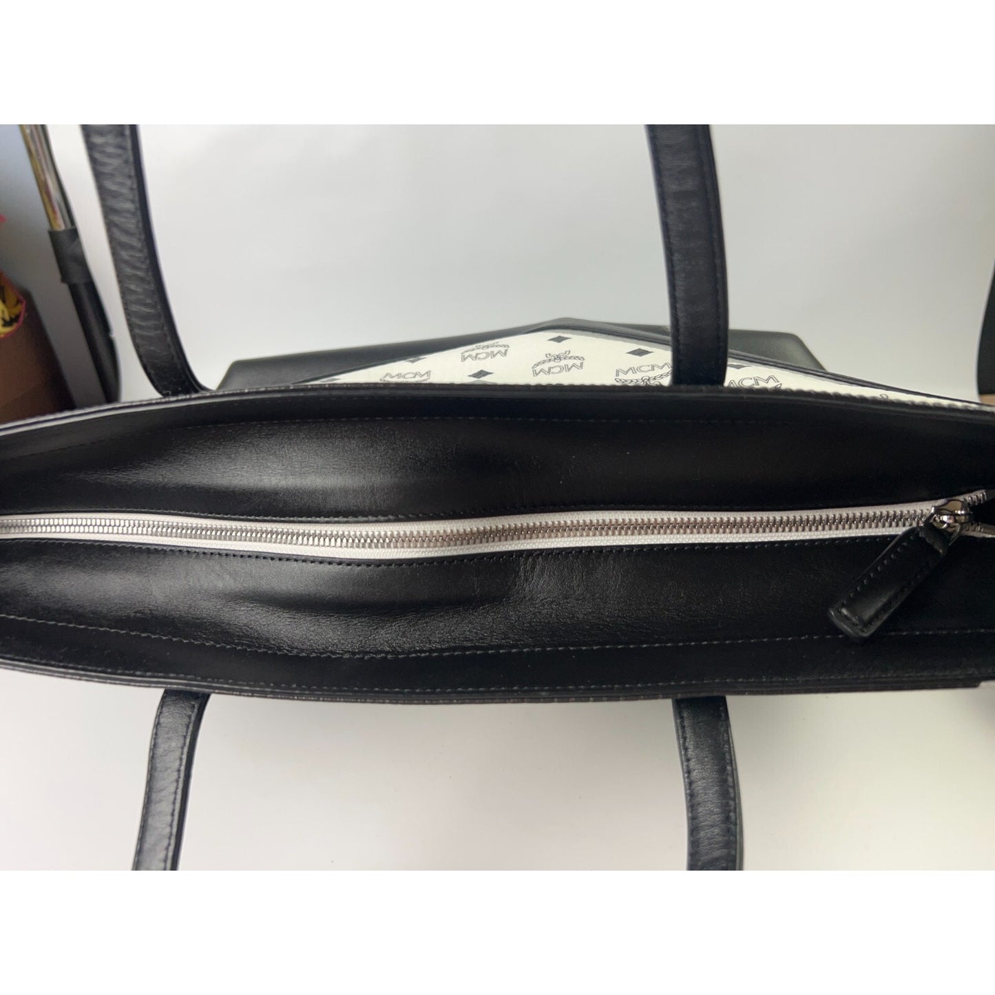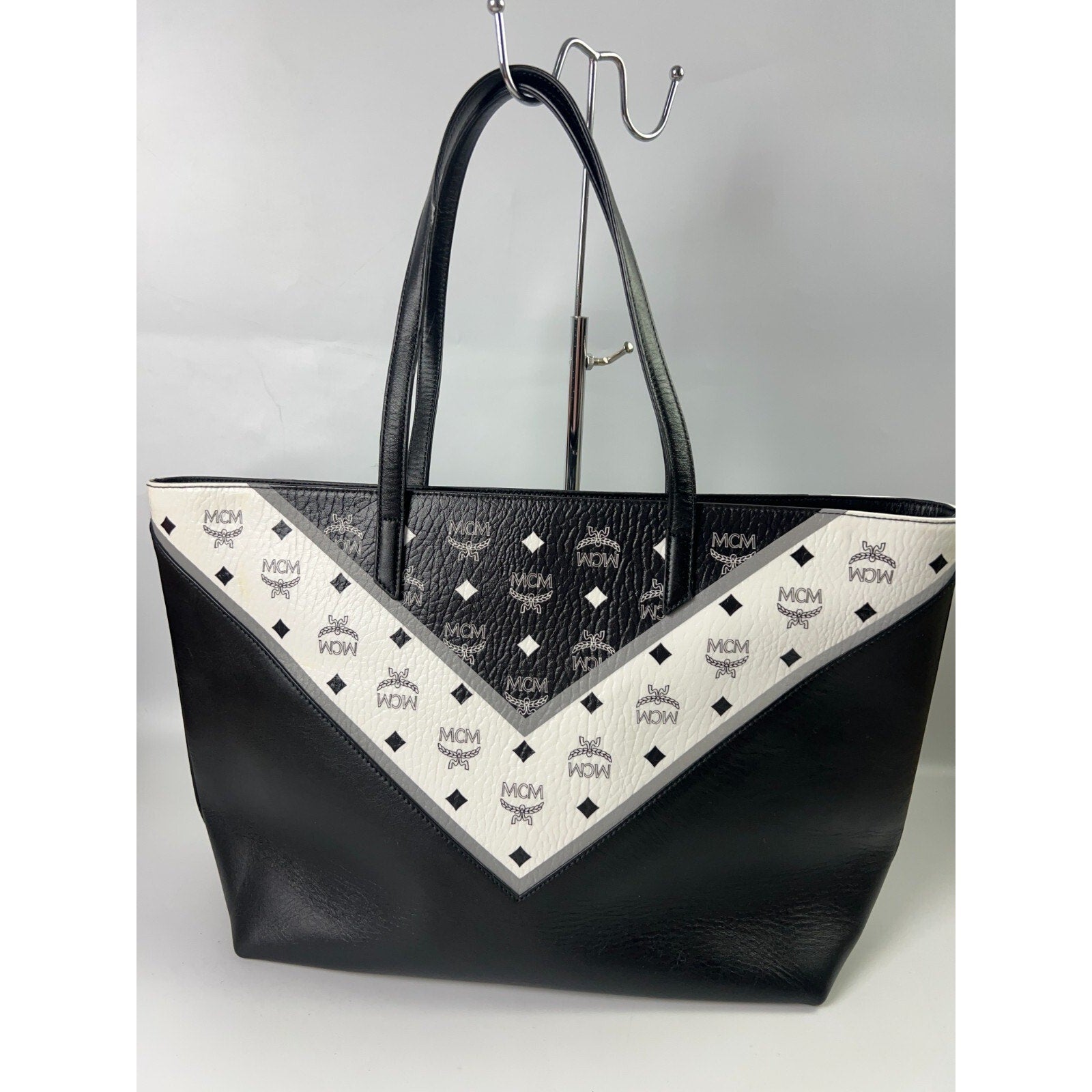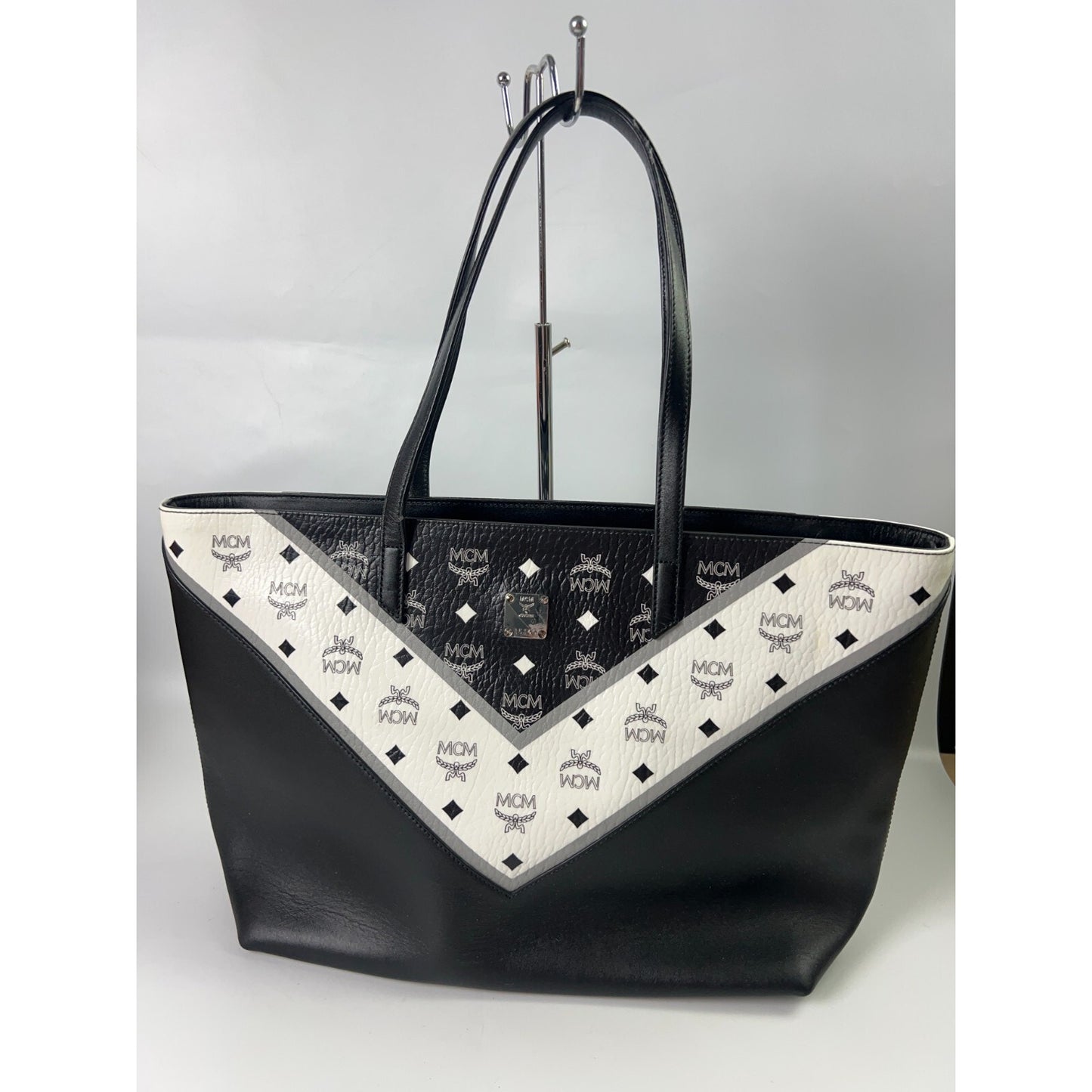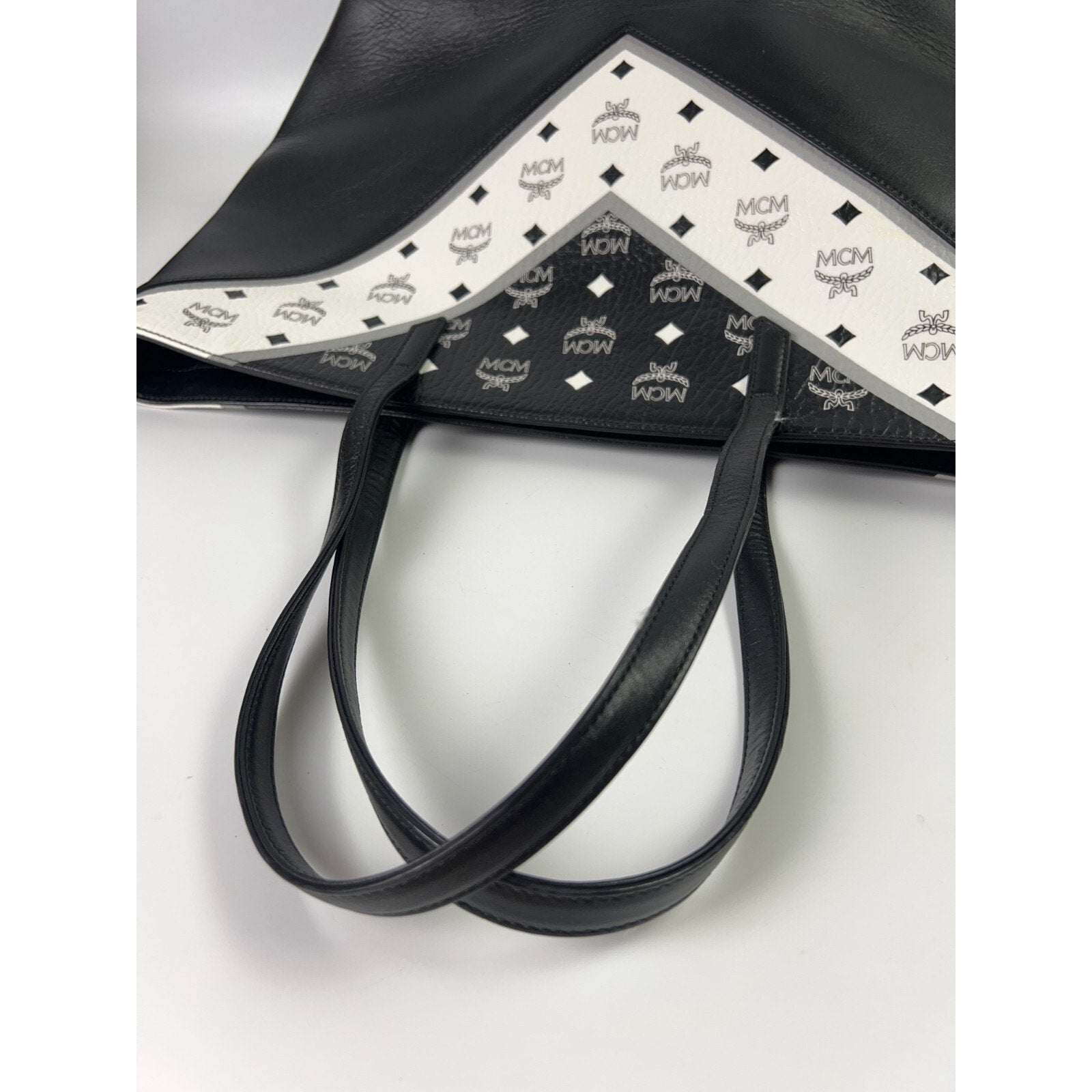 MCM Leather Visetos large tote shopper bag -Blk/Wh