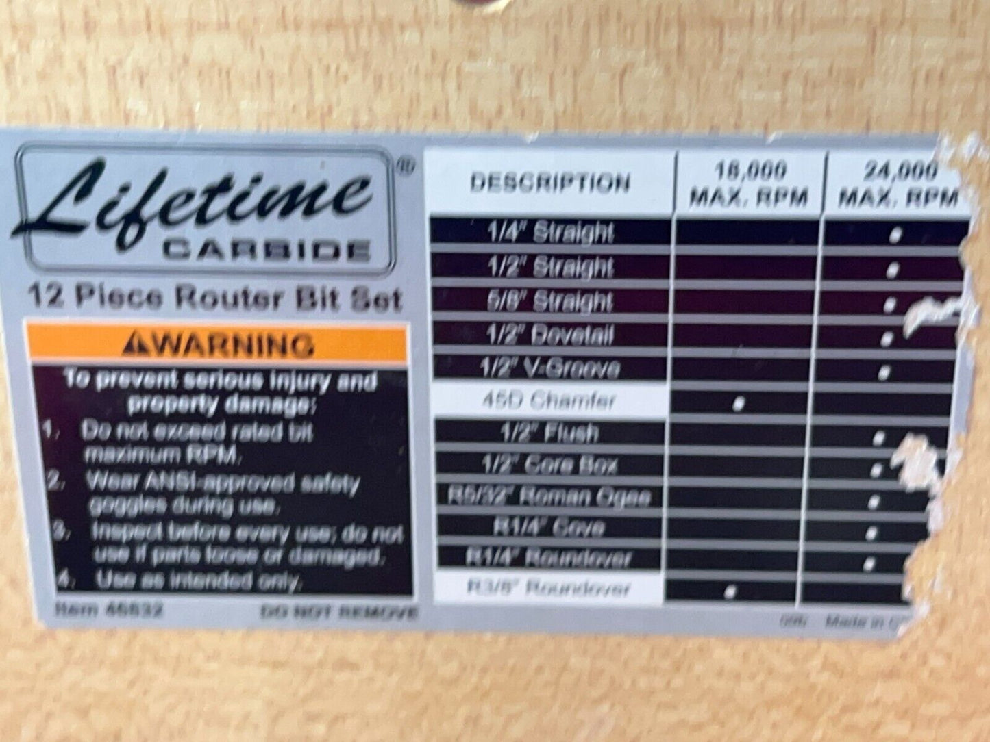 LIFETIME CARBIDE Carbide Tip Router Bit Set, 12 Piece 46832 Complete