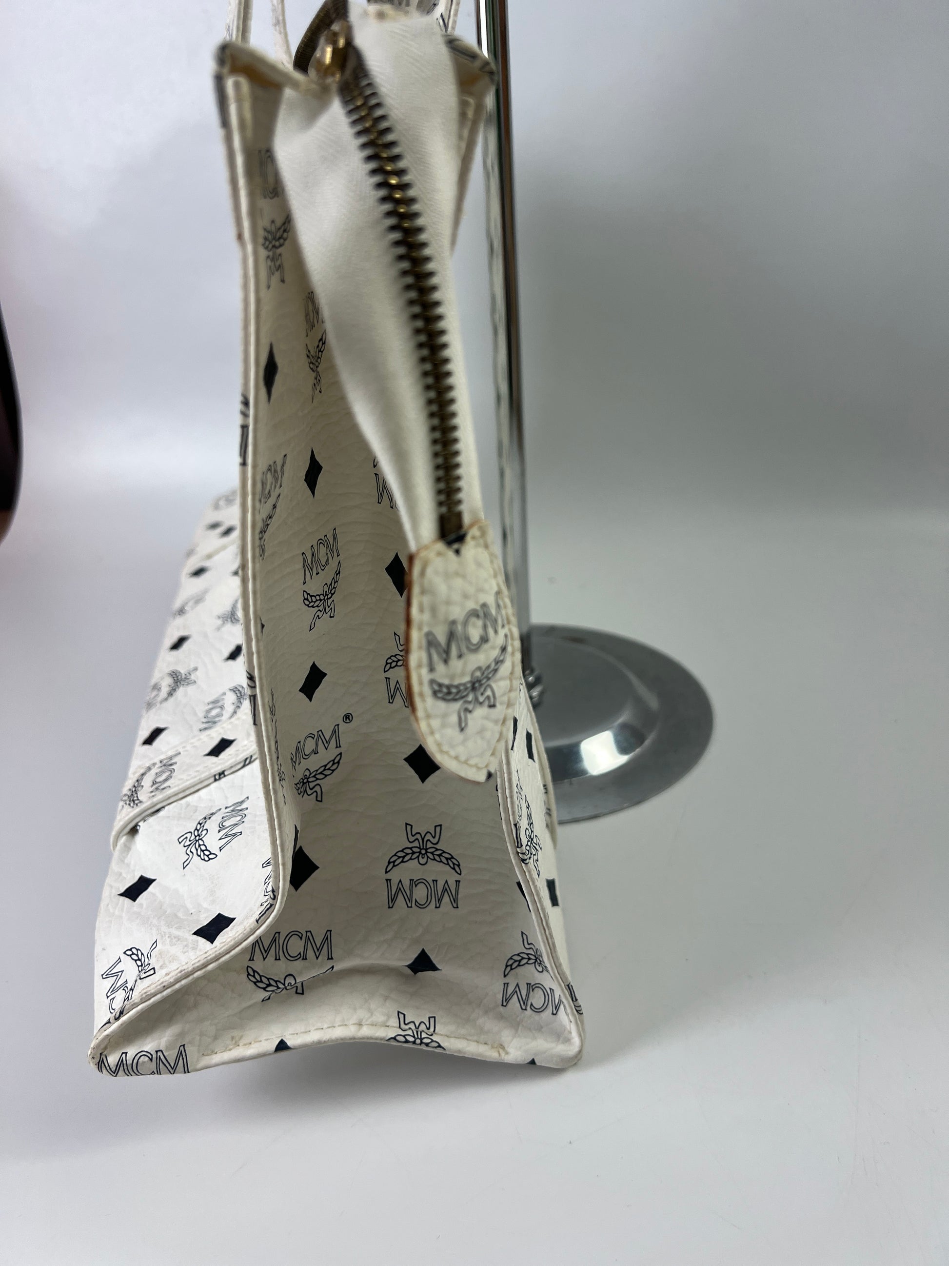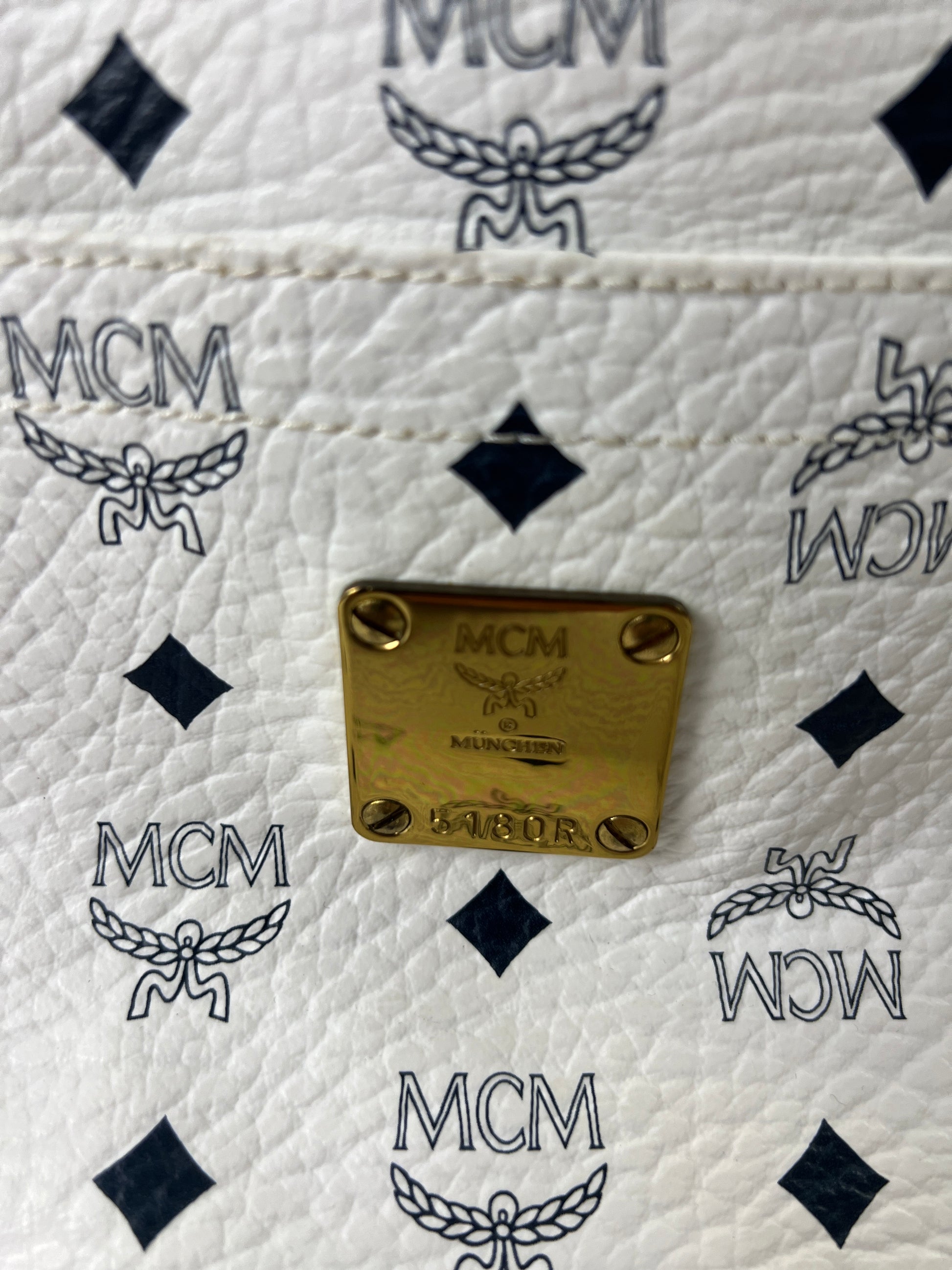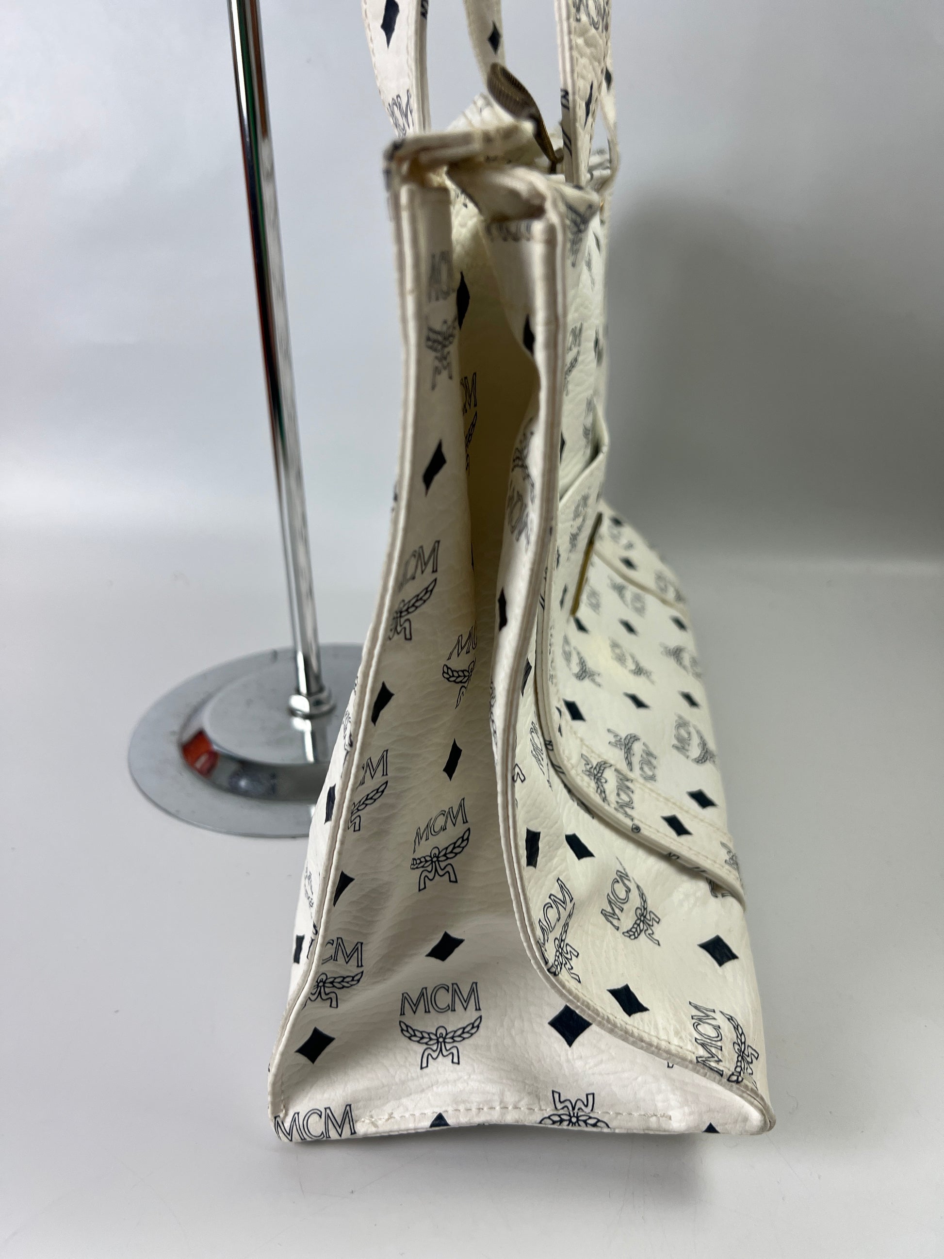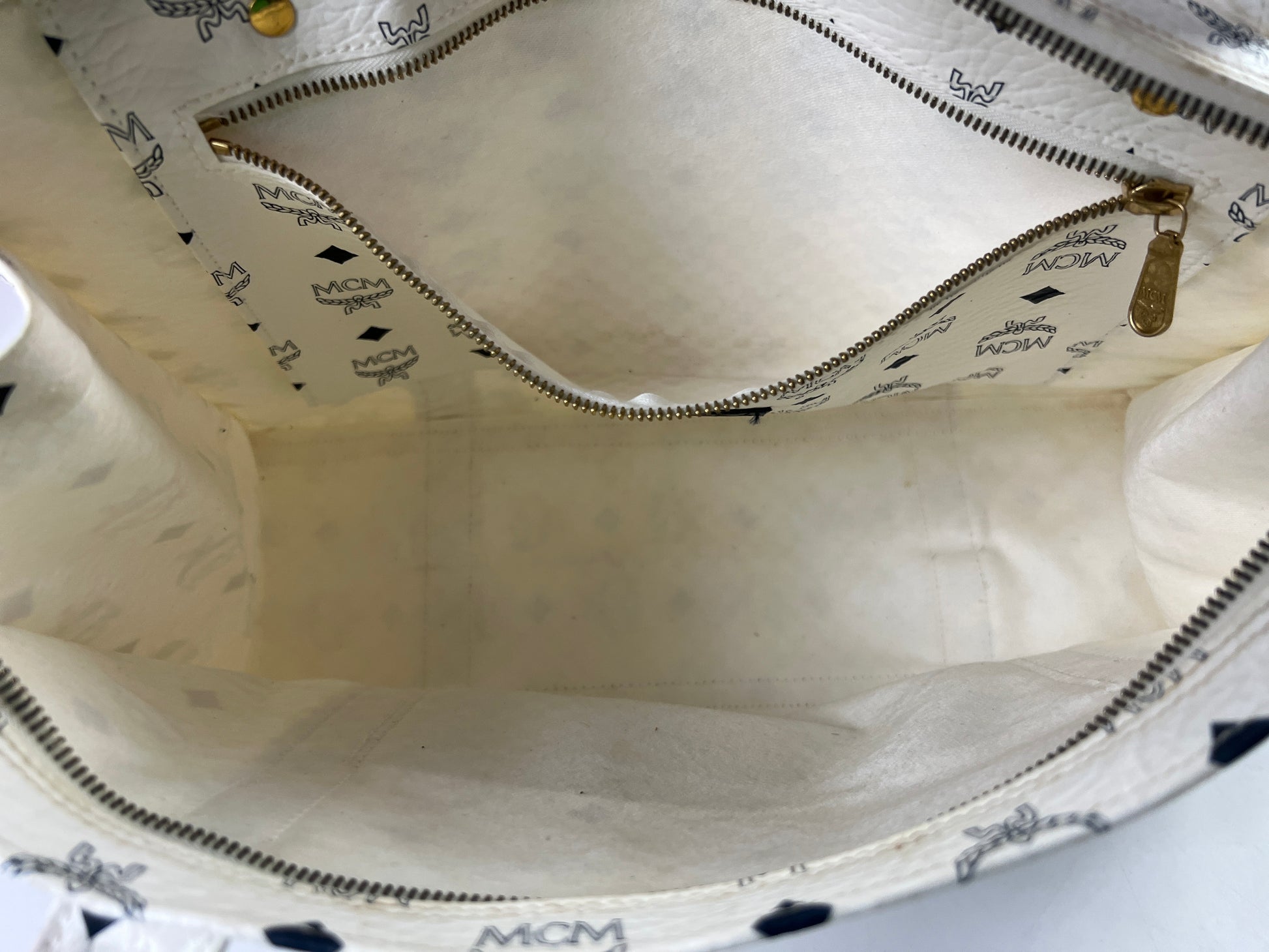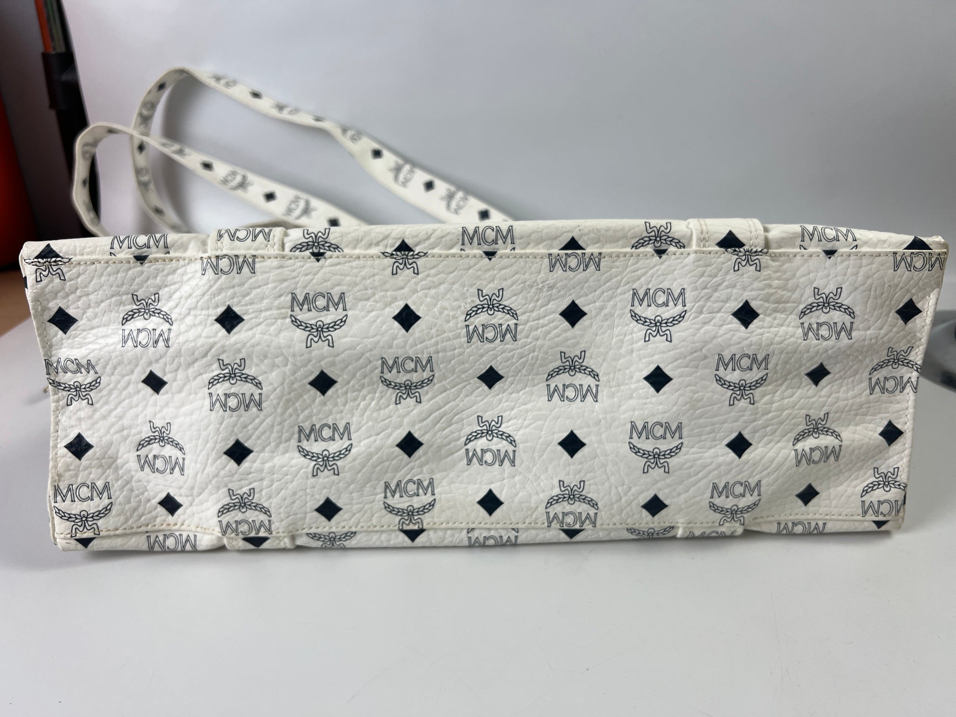 Carry your essentials in style with the MCM Leather large tote shopper bag in white and blue. This spacious tote blends chic design with practical functionality, perfect for your daily adventures or weekend getaways. Its sleek leather finish adds a touch of luxury, while the roomy interior keeps everything organized and within reach. Ready to turn heads and hold all your goodies? This tote’s got you covered!